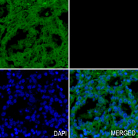 Immunohistochemical analysis of CDC2 staining in human ovarian formalin fixed paraffin embedded tissue section. The section was pre-treated using heat mediated antigen retrieval with sodium citrate buffer (pH 6.0). The section was then incubated with the antibody at room temperature and detected using an HRP conjugated compact polymer system. Tyramide-AF488 (green) was used as the chromogen. The section was then counterstained with DAPI (blue).