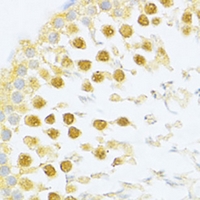 Immunohistochemical analysis of SXR staining in rat testis formalin fixed paraffin embedded tissue section. The section was pre-treated using heat mediated antigen retrieval with sodium citrate buffer (pH 6.0). The section was then incubated with the antibody at room temperature and detected using an HRP conjugated compact polymer system. DAB was used as the chromogen. The section was then counterstained with haematoxylin and mounted with DPX.