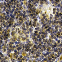 Description:Rabbit polyclonal antibody to SYKImmunogen:KLH-conjugated synthetic peptide encompassing a sequence within the center region of human SYK. The exact sequence is proprietary.Purification:The antibody was purified by immunogen affinity chromatography.Clonality:PolyclonalForm:Liquid in 0.42% Potassium phosphate, 0.87% Sodium chloride, pH 7.3, 30% glycerol, and 0.01% sodium azide.Dilution:IH (1/50 - 1/100), IF/IC (1/100 - 1/500)Gene Symbol:SYKAlternative Names:Tyrosine-protein kinase SYK; Spleen tyrosine kinase; p72-Syk