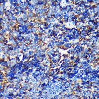 Immunohistochemical analysis of TIP120B staining in mouse spleen formalin fixed paraffin embedded tissue section. The section was pre-treated using heat mediated antigen retrieval with sodium citrate buffer (pH 6.0). The section was then incubated with the antibody at room temperature and detected using an HRP conjugated compact polymer system. DAB was used as the chromogen. The section was then counterstained with haematoxylin and mounted with DPX.