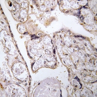 Western blot analysis of ACER3 expression in human placenta (A) whole cell lysates. (Predicted band size: 31 kD; Observed band size: 32 kD) -