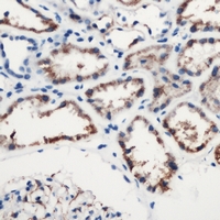 Immunohistochemical analysis of Complement C1S staining in human kidney formalin fixed paraffin embedded tissue section. The section was pre-treated using heat mediated antigen retrieval with sodium citrate buffer (pH 6.0). The section was then incubated with the antibody at room temperature and detected using an HRP conjugated compact polymer system. DAB was used as the chromogen. The section was then counterstained with haematoxylin and mounted with DPX.