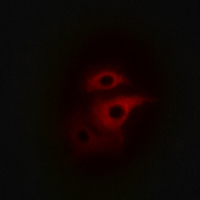 Immunofluorescent analysis of DGK delta staining in A549 cells. Formalin-fixed cells were permeabilized with 0.1% Triton X-100 in TBS for 5-10 minutes and blocked with 3% BSA-PBS for 30 minutes at room temperature. Cells were probed with the primary antibody in 3% BSA-PBS and incubated overnight at 4 °C in a hidified chamber. Cells were washed with PBST and incubated with a AF594-conjugated secondary antibody (red) in PBS at room temperature in the dark.