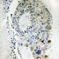 Immunohistochemical analysis of DGK delta staining in human lung cancer formalin fixed paraffin embedded tissue section. The section was pre-treated using heat mediated antigen retrieval with sodium citrate buffer (pH 6.0). The section was then incubated with the antibody at room temperature and detected using an HRP conjugated compact polymer system. DAB was used as the chromogen. The section was then counterstained with haematoxylin and mounted with DPX. -