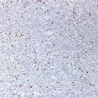 Immunohistochemical analysis of CD3e staining in human spleen formalin fixed paraffin embedded tissue section. The section was pre-treated using heat mediated antigen retrieval with sodium citrate buffer (pH 6.0). The section was then incubated with the antibody at room temperature and detected using an HRP conjugated compact polymer system. DAB was used as the chromogen. The section was then counterstained with haematoxylin and mounted with DPX. -