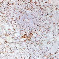 Immunohistochemical analysis of CD3e staining in human diffuse large b-cell lymphoma formalin fixed paraffin embedded tissue section. The section was pre-treated using heat mediated antigen retrieval with sodium citrate buffer (pH 6.0). The section was then incubated with the antibody at room temperature and detected using an HRP conjugated compact polymer system. DAB was used as the chromogen. The section was then counterstained with haematoxylin and mounted with DPX. -