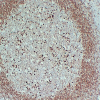 Immunohistochemical analysis of CD79a staining in human tonsil formalin fixed paraffin embedded tissue section. The section was pre-treated using heat mediated antigen retrieval with sodium citrate buffer (pH 6.0). The section was then incubated with the antibody at room temperature and detected using an HRP conjugated compact polymer system. DAB was used as the chromogen. The section was then counterstained with haematoxylin and mounted with DPX.