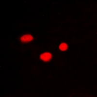 Immunofluorescent analysis of PSMB10 staining in Hela cells. Formalin-fixed cells were permeabilized with 0.1% Triton X-100 in TBS for 5-10 minutes and blocked with 3% BSA-PBS for 30 minutes at room temperature. Cells were probed with the primary antibody in 3% BSA-PBS and incubated overnight at 4 °C in a hidified chamber. Cells were washed with PBST and incubated with a DyLight 594-conjugated secondary antibody (red) in PBS at room temperature in the dark.