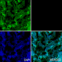 Immunohistochemical analysis of RNLS staining in rat kidney formalin fixed paraffin embedded tissue section. The section was pre-treated using heat mediated antigen retrieval with sodium citrate buffer (pH 6.0). The section was then incubated with the antibody at room temperature and detected using an HRP conjugated compact polymer system. Tyramide-AF488 (green) was used as the chromogen. The section was then counterstained with DAPI (blue).