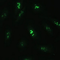 • Immunofluorescent analysis of HNF-4 gamma staining in U2OS cells. Formalin-fixed cells were permeabilized with 0.1% Triton X-100 in TBS for 5-10 minutes and blocked with 3% BSA-PBS for 30 minutes at room temperature. Cells were probed with the primary antibody in 3% BSA-PBS and incubated overnight at 4 °C in a hidified chamber. Cells were washed with PBST and incubated with a Alexa Fluor 488-conjugated secondary antibody (green) in PBS at room temperature in the dark.