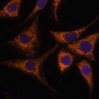 Immunofluorescent analysis of STCH staining in L929 cells. Formalin-fixed cells were permeabilized with 0.1% Triton X-100 in TBS for 5-10 minutes and blocked with 3% BSA-PBS for 30 minutes at room temperature. Cells were probed with the primary antibody in 3% BSA-PBS and incubated overnight at 4 °C in a hidified chamber. Cells were washed with PBST and incubated with a Alexa Fluor 594-conjugated secondary antibody (red) in PBS at room temperature in the dark.