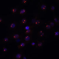 Immunofluorescent analysis of METTL16 staining in C6 cells. Formalin-fixed cells were permeabilized with 0.1% Triton X-100 in TBS for 5-10 minutes and blocked with 3% BSA-PBS for 30 minutes at room temperature. Cells were probed with the primary antibody in 3% BSA-PBS and incubated overnight at 4 °C in a humidified chamber. Cells were washed with PBST and incubated with a AF594-conjugated secondary antibody (red) in PBS at room temperature in the dark. DAPI was used to stain the cell nuclei (blue).